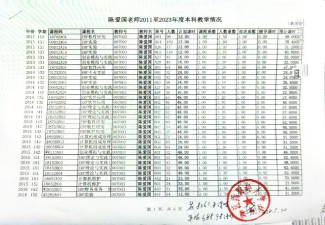 在教学岗位上,陈爱国老师同样交出优异答卷。近12年来,他累计授课9254课时,年均712课时,评教均为优秀,网评分为93.34(五星等级)。