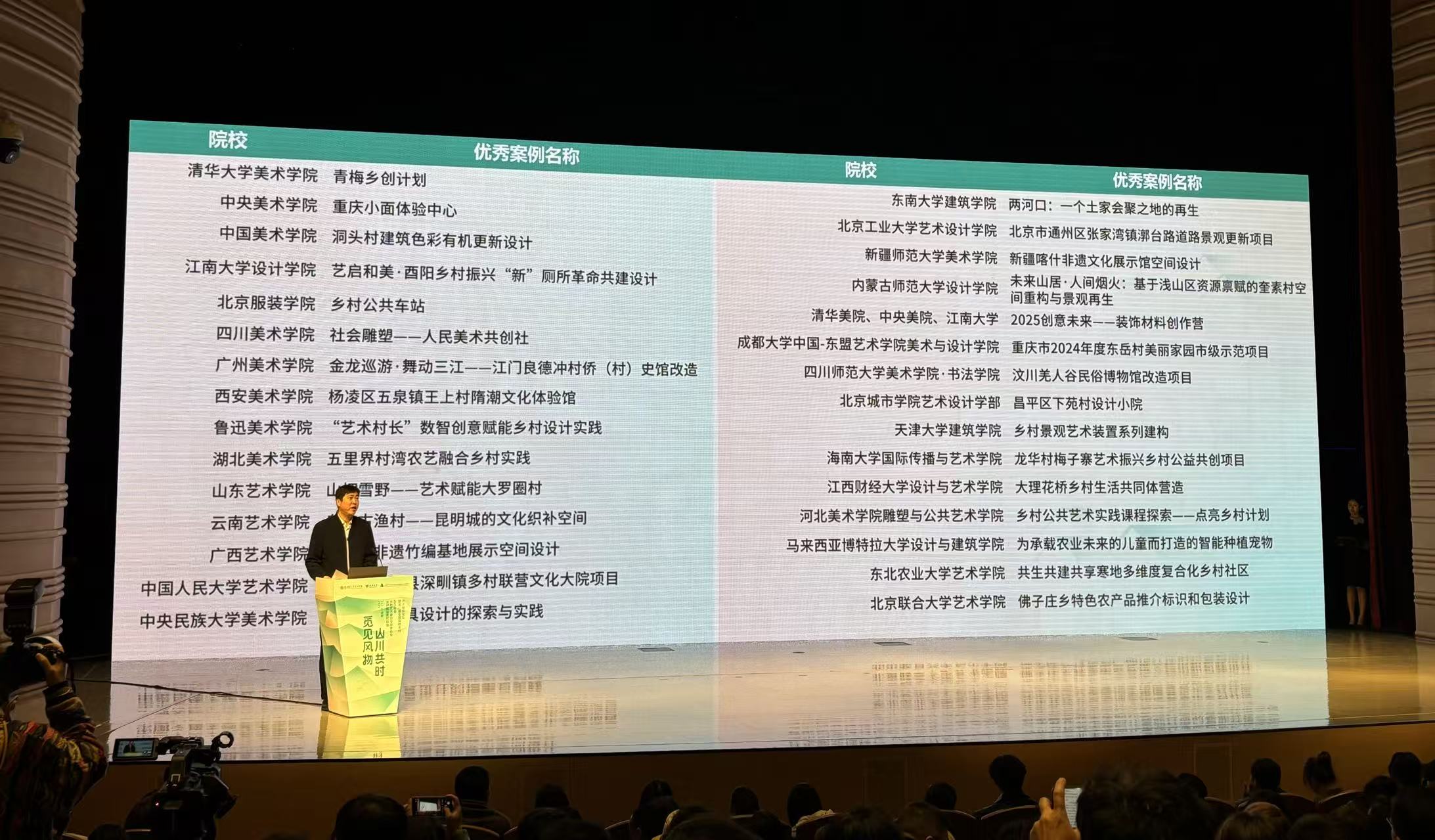 近日,乡村建设高校联盟乡村艺术建设专项委员会2025年会暨第三届全国高校乡村艺术建设论坛在成都大学东盟艺术中心举行。设计与艺术学院罗璇博士团队申报的校企合作项目《大理花桥乡村生活共同体营造》入选2025年全国高校乡村艺术建设30大优秀案例。