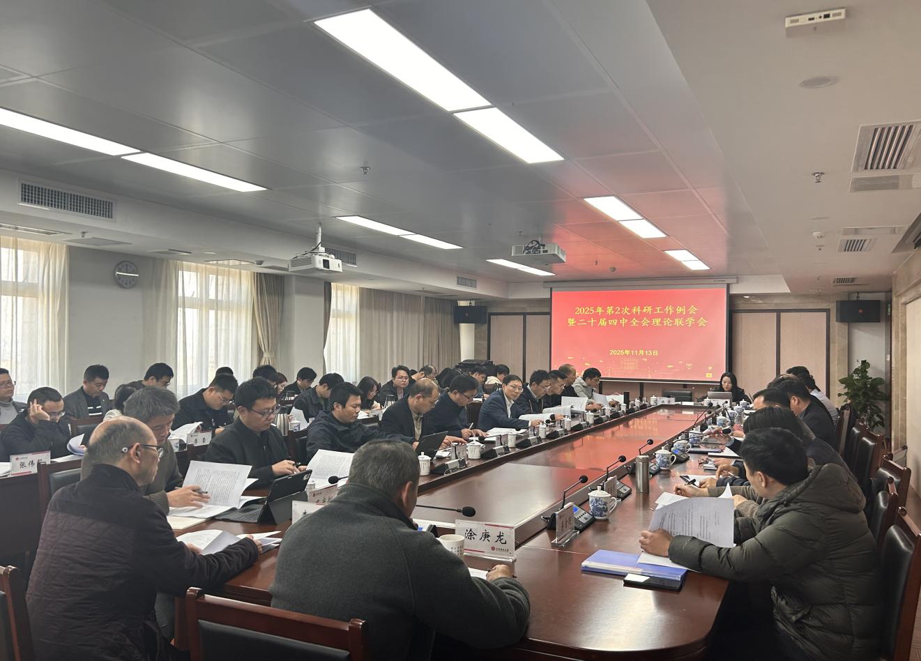 会议围绕多项核心议题展开。科研处处长谌飞龙就党的二十届四中全会精神作领学发言,并通报了国家课题申报的进展与问题;成果转化中心主任吴丹波对横向课题的年度进展进行了通报与部署;科研处副处长蒋崇辉围绕“加快构建中国哲学社会科学自主知识体系”进行发言;科研处副处长刘喜平强调了科研诚信教育和科研经费管理工作的重要性,并提出了明确要求。各教学学院及科研平台代表就申报准备情况、遇到的困难进行了交流发言。