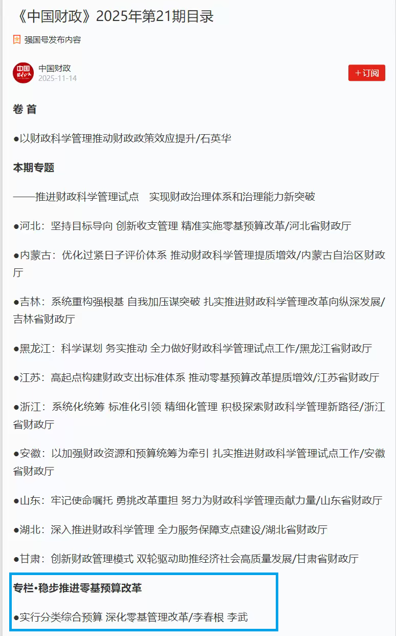 文章重点介绍了三大实践举措:一是重构预算体系,赋能分类治理;二是实行分类预算,深化“零基改革”;三是加快数字转型,推进“业财融合”。