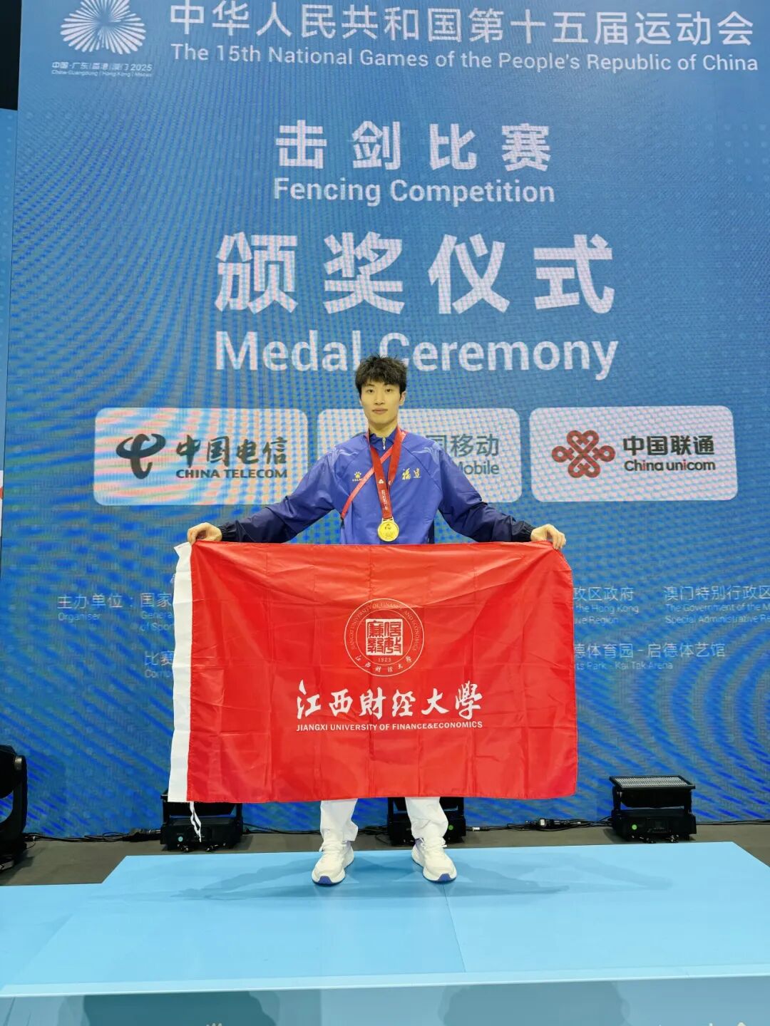 11月16日,第十五届全国运动会击剑项目决赛在香港落下关键一战,江西财经大学2025级运动训练专业学子许杰在男子花剑个人赛中,凭借精湛技艺、沉稳心态与顽强斗志,力克国内顶尖选手,最终摘得冠军奖牌。这是江财建校以来首枚全运会击剑个人项目金牌,不仅彰显了江财学子的卓越风采,更标志着学校“体教融合”育人模式结出丰硕成果。