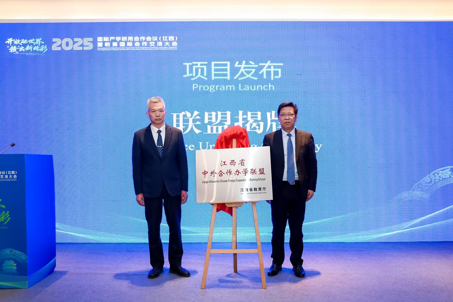 会议期间,我校承办了“中外协同,提质赋能——高校中外合作办学高质量发展研讨会”平行论坛。会议伊始,江西省教育厅宣布成立“江西省中外合作办学联盟”,发布联盟章程并举行揭牌仪式,江西省教育厅二级巡视员陈晓通与袁红林副校长共同揭牌。我校担任联盟理事长单位,后续将与省内高校携手,共同推动全省中外合作办学高质量发展。