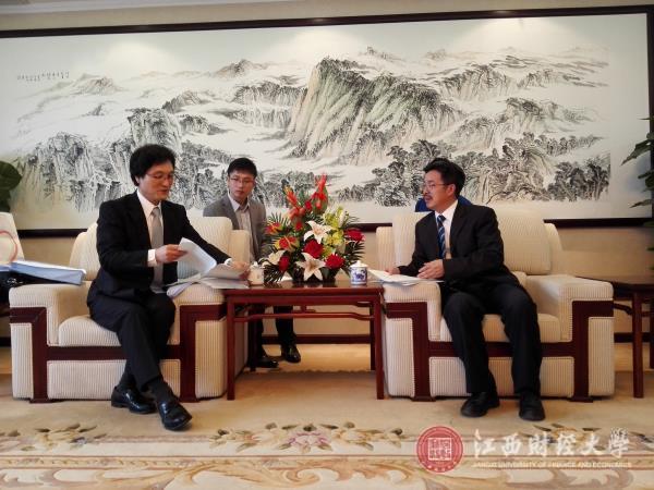 蒋金法与古口博之进行了非常友好的会谈。蒋金法代表学校向客人表示了欢迎,并简要介绍了学校的基本情况以及近年来国际化办学取得的成绩。古口先生对江西财经大学国际化办学取得的成绩予以了赞赏,并向与会人员介绍了日本岐阜经济大学的办学历史和国际化发展情况。随后,双方就学分互认、本科层次的学生交流项目等合作内容达成了意向。