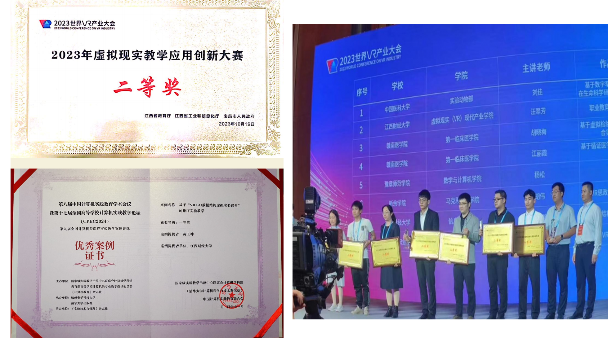 如何让《数据结构》中抽象的指针、链表“活”起来?黄玉坤引入了VR技术。她带领学生开发VR算法课件,将算法执行过程可视化、可交互,该创新不仅荣获虚拟现实教学应用创新大赛二等奖,更在全国计算机类课程实验教学案例竞赛中斩获一等奖。并在教育领域重要国际会议((ICEEL 2023)上发表一作教研论文1篇。