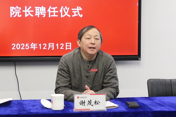 黄瑶妮代表学校对谢茂松教授的加盟表示热烈欢迎。她指出,人文经济与国家战略研究院的成立,是学校响应国家战略需求、优化学科布局、提升科研创新能力的关键举措。谢茂松教授在人文经济与国家战略相关领域深耕多年,学术造诣深厚、实践经验丰富、社会影响力广泛,他的加盟将为学校"双一流"建设注入新动能。