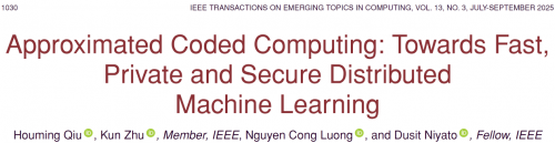 近期,团队在编码分布式计算领域及其在机器学习中的应用均取得了关键性进展,两篇研究成果分别于4月和11月被国际顶级期刊《IEEE Transactions on MobileComputing》和《IEEE Transactions on Emerging Topics inComputing》收录。这标志着团队在编码分布式计算与系统可靠性方面得到了行业的高度认可,相关技术有望直接应用于大规模计算系统和边缘计算场景,为分布式系统应对海量数据提供全新的技术路径。这两个成果的介绍如下: