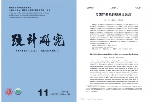 成果一:反国际避税政策对劳动力就业的影响。发表于《统计研究》2025年第11期的论文《反国际避税的稳就业效应》从国际税收政策视角为理解我国税收政策如何发挥稳就业作用提供了新的证据。主要研究结果显示:国别报告实施导致的反国际避税力度增强显著扩大了我国跨国企业在本土的劳动力雇佣规模。跨国企业通过将原本计划转移至国外的利润用于扩大固定资产投资是反国际避税发挥稳就业效应的重要机制。此外,反国际避税力度增强还显著促进了我国跨国企业的产业升级,表现在资本劳动比和全要素生产率的全面提升。