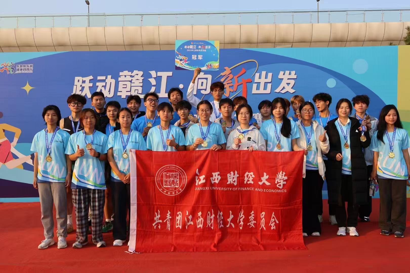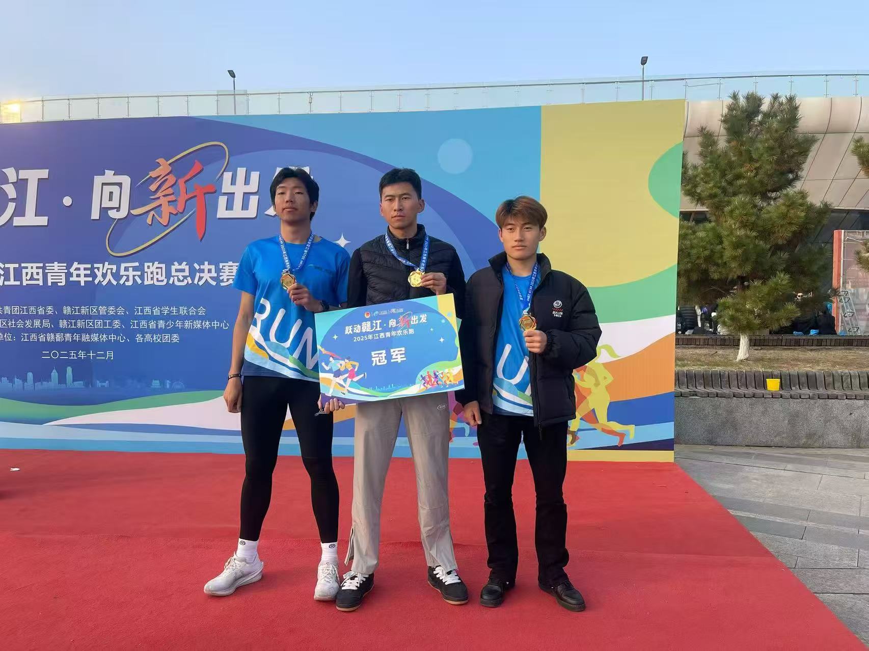 风从赣江来,跑向新区巅。12月7日,跃动赣江·向“新”出发2025年江西青年欢乐跑全省总决赛在赣江新区儒乐湖公园隆重开幕。本次赛事由共青团江西省委、赣江新区管委会、江西省学生联合会主办,江西省青少年新媒体中心协办。有豫章师范学院、南昌大学共青学院等8所高校200名优秀大学生参加。我校定向协会组织12位同学,由副会长陈厚鹍同学带领,协助校团委组队参加比赛,同学们经过奋力拼搏,最终取得了本届总决赛的团体冠军,为学校赢得荣誉,也展示了江财学子积极向上、敢为人先的精神面貌。