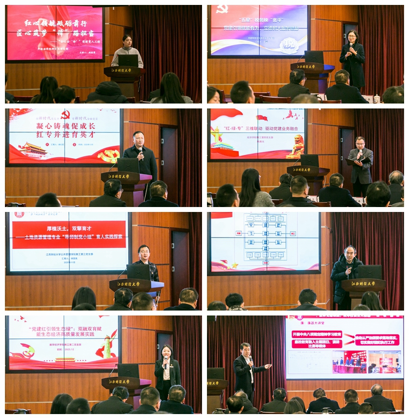 本次大赛经报名遴选,共8个学院党委项目、11个党支部项目参加。各项目参赛负责人深度解读了党建品牌项目在立德树人、组织科研及社会服务中的创新实践与成效。内容涵盖了党建与业务融合、党员队伍建设、组织生活创新、服务师生群众等关键领域,以系统思路梳理解题路径、以扎实案例佐证实践成果、以详实数据彰显工作实效,充分展示了各学院党委及基层党支部在人才培养、学科建设、服务地方中的党建成果。