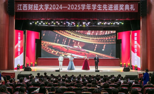 设计与艺术学院师生在先进颁奖典礼上演唱了歌曲《领航》、校主持队朗诵了《江财颂歌》,全体师生起立奏唱江西财经大学校歌,颁奖典礼在振奋人心的旋律中圆满落幕。