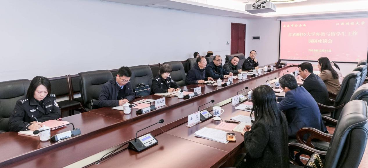 12月16日上午,南昌市公安局党委委员、副局长熊锋一行到访我校,就外教与留学生管理工作进行专题调研。副校长袁红林出席调研座谈会,相关工作人员参加会议。