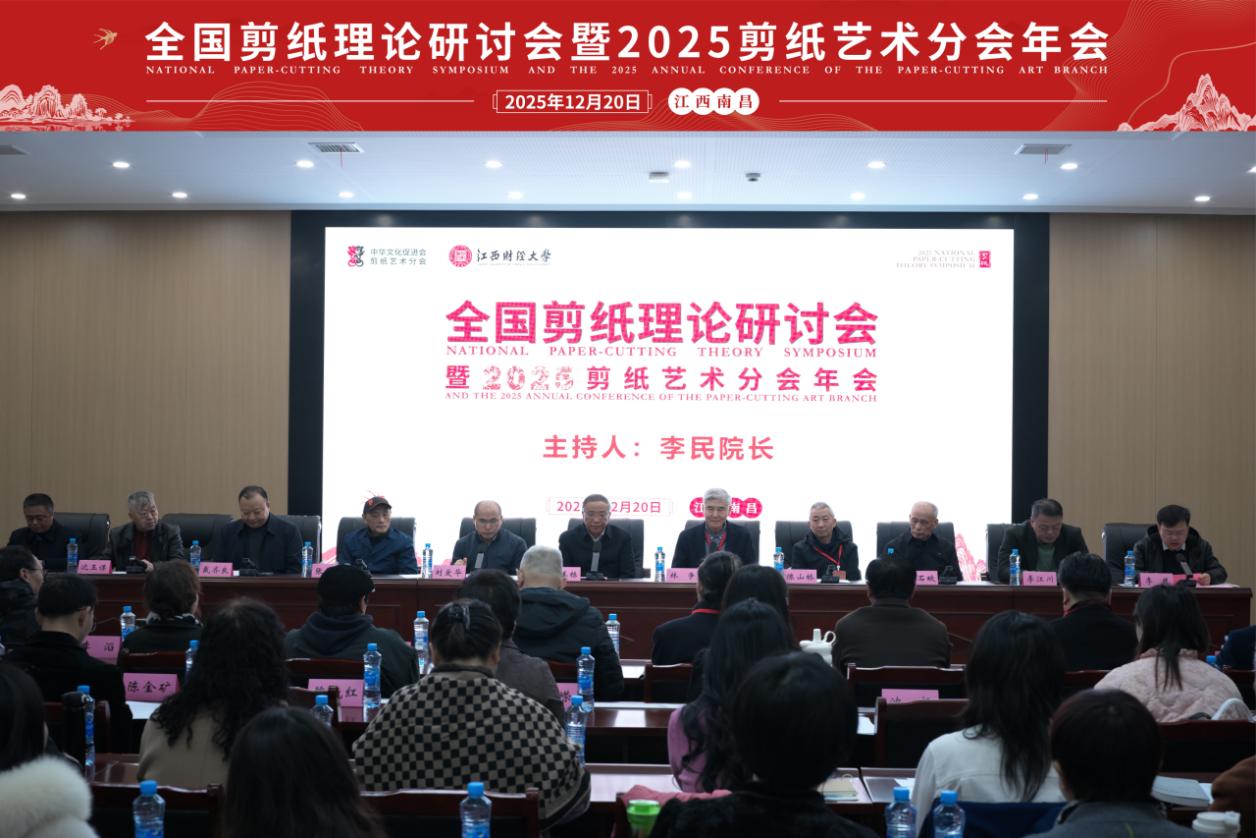 冬韵赣鄱,艺聚江财。12月19日至21日,由中华文化促进会、江西省民间文艺家协会指导,中华文化促进会剪纸艺术分会与江西财经大学联合主办,江西财经大学设计与艺术学院、剪纸艺术协同创新中心承办的“全国剪纸理论研讨会暨2025剪纸艺术分会年会”在我校蛟桥园校区成功举办。来自全国30余个省市的剪纸非遗传承人、国家级大师、高校学者及行业专家等百余位嘉宾齐聚一堂,以剪为媒、以艺会友,共探剪纸艺术的传承之道与创新之路。