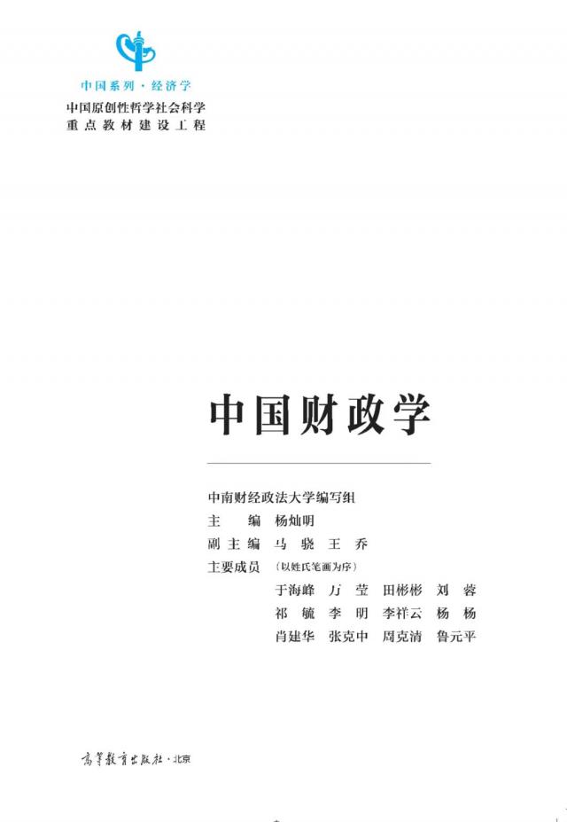 该教材是中国原创性哲学社会科学重点教材建设工程“中国系列”中国经济学教材,由教育部组织中南财经政法大学编写,中南财经政法大学杨灿明教授任主编,西南财经大学马骁教授、江西财经大学王乔教授任副主编,是首批正式出版的中国经济学教材之一。教材以习近平新时代中国特色社会主义思想为指导,从根本上用马克思主义方法论分析中国的财政问题,全面把握财政学理论的基本特征,构建中国财政学自主知识体系。