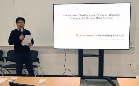 韩国全南国立大学Koo Eunho教授作了题为Node Classification via simplicial interaction with augmented maximal clique selection的报告,针对高阶和低阶分派之间的信息重叠导致计算效率低的问题,提出一种增强型最大子群并将该策略整合到半监督学习中。