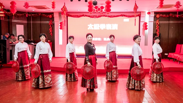 表彰会后,由退休老师杨霞主持的迎新联欢会在欢快气氛中拉开序幕。15个精彩节目轮番上演,为观众献上一场温情与活力交织的视听盛宴。舞蹈《北京的金山上》步履轻盈,唤起岁月深情;男声独唱《向往》铿锵激昂,唱出奋进豪情;二重奏《晋城往事》悠扬怀旧,演绎往昔情韵;太极《桃花剑》《八段锦》及二十四式杨式等太极拳刚柔并济,尽显传统底蕴;配乐诗朗诵《滕王阁序》(节选)与《盛世中国》或悠远深沉或慷慨激昂,抒发家国情怀;舞蹈《梨花赋》柔美婉约,舞动芳华;葫芦丝与二胡独奏婉转动人,拉丁舞《桥边姑娘》与时装秀《踏古》时尚灵动,合唱《爱永在》温情流淌。台上倾情演绎,台下掌声连连,新老相聚,笑语欢声,情谊交融,共迎新春。