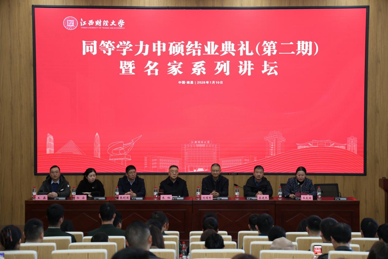 冬日暖阳映蛟桥,学海扬帆硕果香。1月10日下午,江西财经大学(第二期)同等学力申硕结业典礼暨名家讲坛举办。本次名家讲坛特邀江西省委原常委、秘书长,江西省政府原副省长,南昌大学教授、博士生导师朱虹开展主题讲座。校党委书记刘耀彬出席活动。