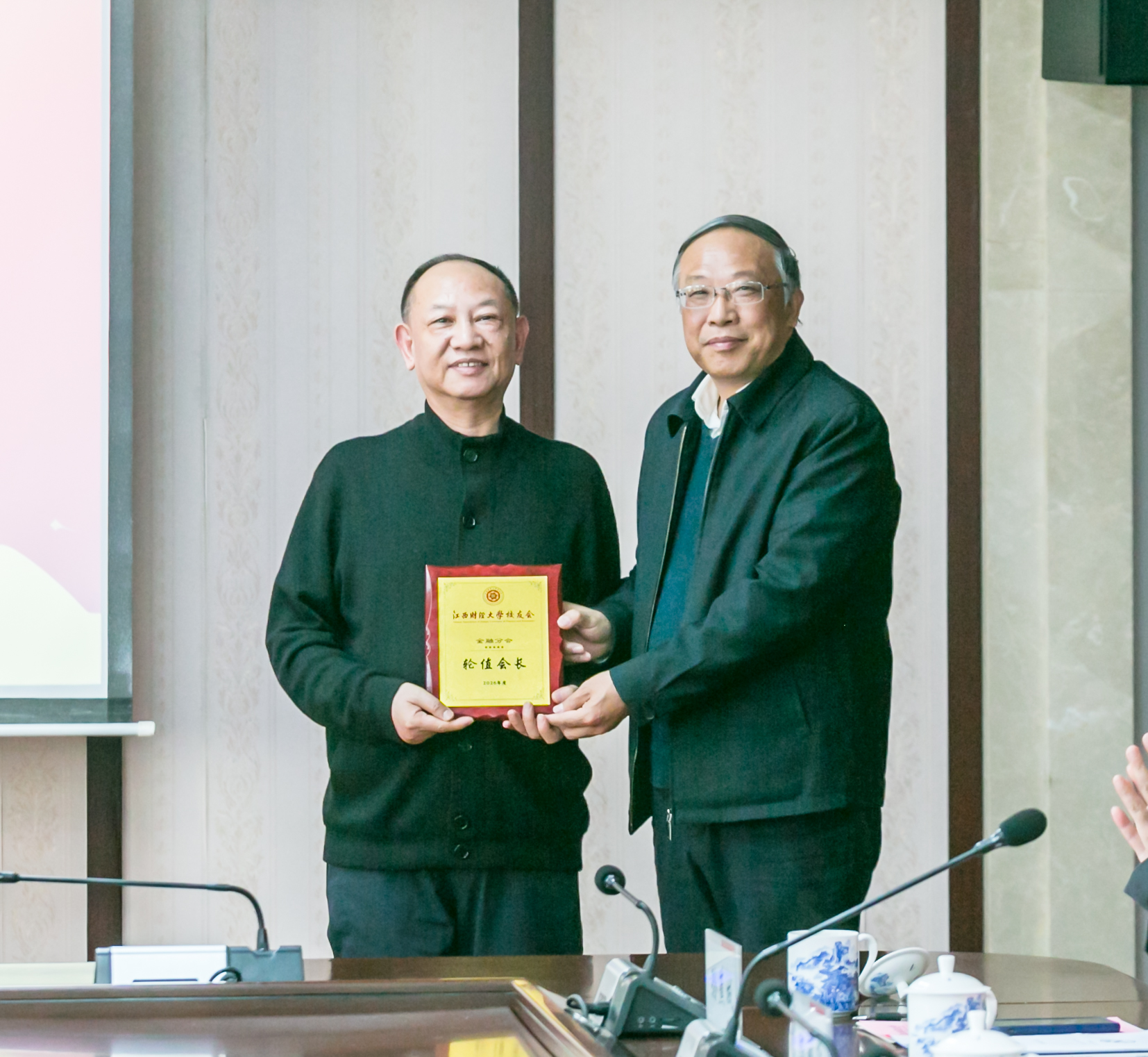 1月9日,江西财经大学校友会金融分会2025年度工作总结会议暨轮值会长授牌仪式举行。副校长阙善栋、李春根出席会议并讲话,校友联络服务中心、金融学院负责人与大湾区金融校友联合会、北京校友会金融分会、上海校友会金融分会、南昌校友会金融分会的十余位校友代表共同参加了会议。