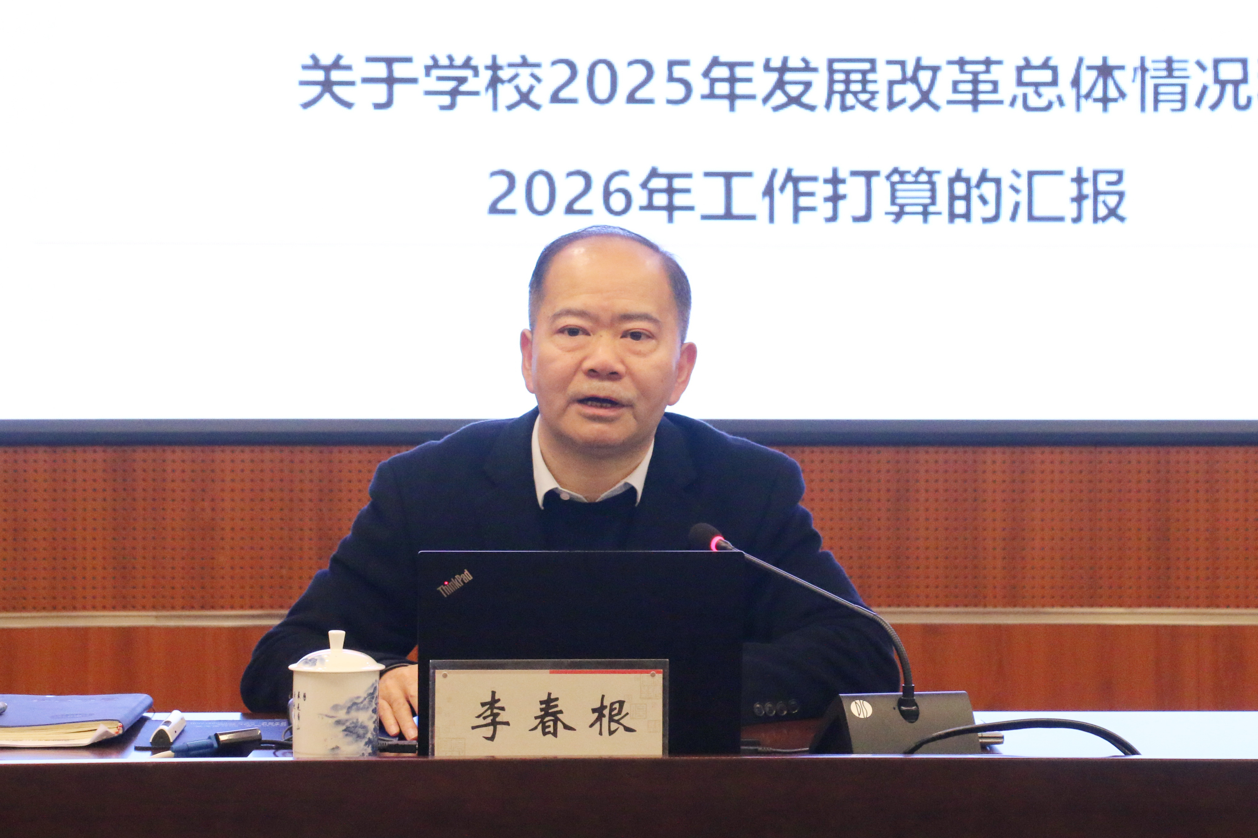李春根主要围绕四个方面宣讲:一是讲好江财改革发展故事,《关于学校2025年发展改革总体情况和2026年工作打算的汇报》;二是讲好年度综合考核故事,《充分发挥综合考核正向激励作用坚定不移推动学校事业高质量发展》;三是《中共江西财经大学党委关于“十五五”规划建议征求意见稿》;四是《以“双一流”建设为目标以改革为动力全面推进学校事业高质量发展——在中共江西财经大学第六届委员会第五次全体会议上关于校党委常委会工作的报告》的重点精神,进行了全面系统的展开阐释。