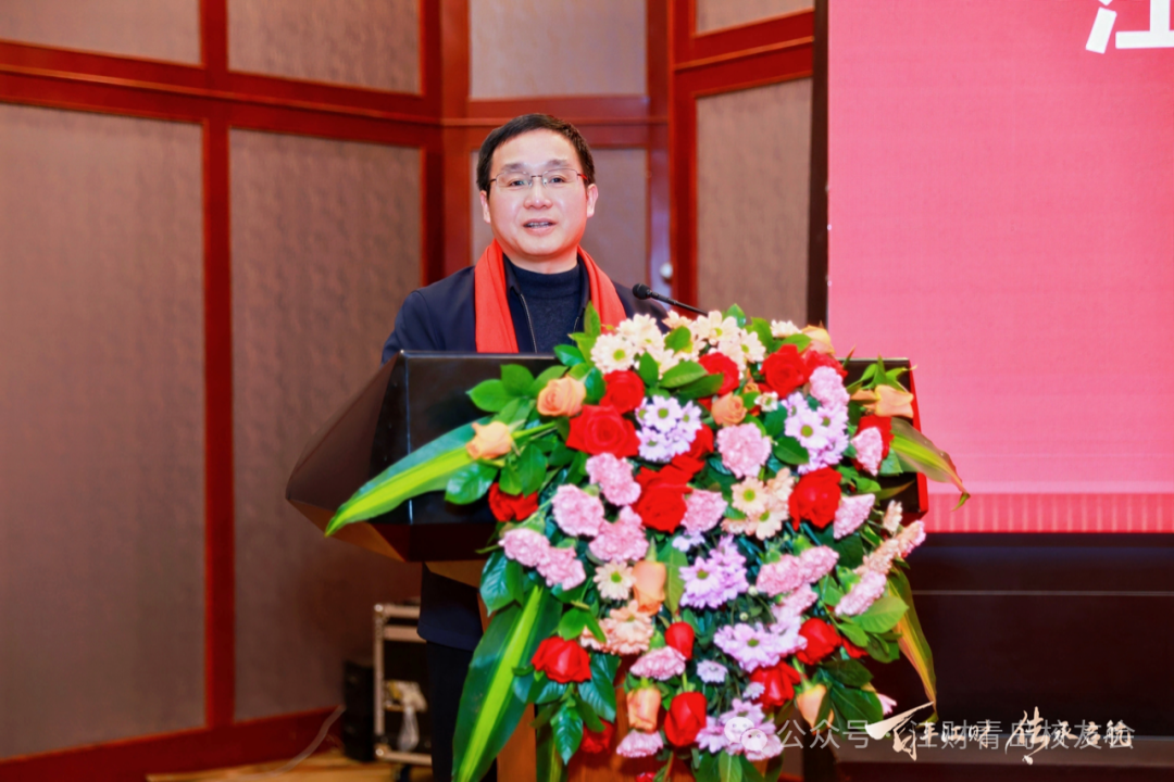 贺丹君在致辞中高度肯定了青岛代表处多年来在凝聚校友、服务地方、反哺母校等方面的突出成效。他代表学校向青岛代表处上一届班子的辛勤付出表示感谢,向扎根青岛开启人生新征程的新校友表示欢迎,向青岛校友报告了学校在推进“三大转型”、冲刺“双一流”建设过程中取得的成绩。薪火相传聚合力,校友情深启新程,贺丹君向青岛代表处新一届班子表示祝贺并送上殷切嘱托:“希望你们传承优良传统、创新工作方法,深化交流合作、拓展发展空间,让校友会成为校友事业发展的‘助推器’、校地合作的‘连心桥’;期待青岛校友常念母校情,在各自岗位上发光发热,为社会贡献江财力量,为母校增添新的荣光。”