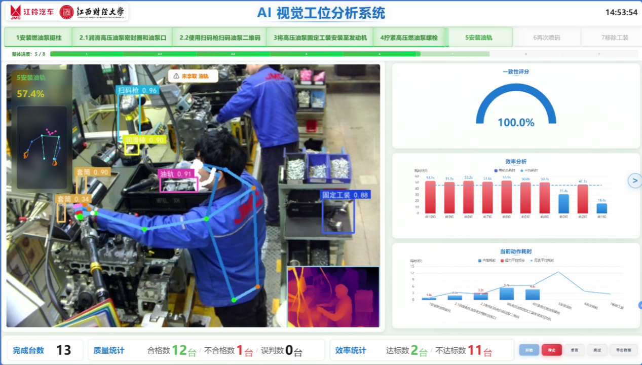 校企联合研发新技术16项、新产品14个,落地应用场景100余个。其中,全景数字孪生技术应用于生态环境部“一园一策一图”工程;小样本“AI+智能制造”平台应用于江铃汽车等10余家企业;轻量级手势识别技术将应用于希沃智慧屏。