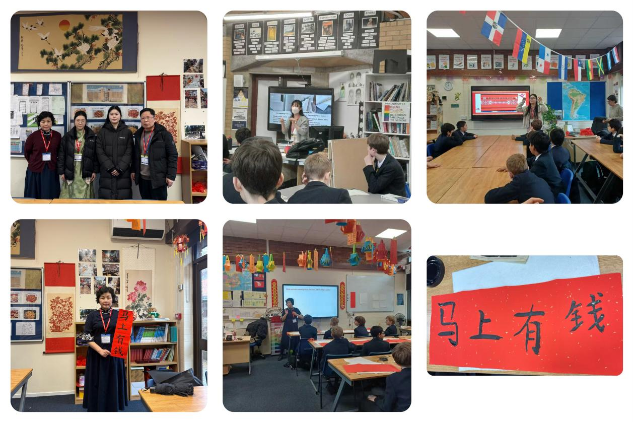 2月6日,在King Edwards VI学校举办的China Day活动中,公派教师詹艳开展书法体验活动,志愿者教师刘子祎带领学生体验国画创作,志愿者教师黄文慧开展剪纸体验课。