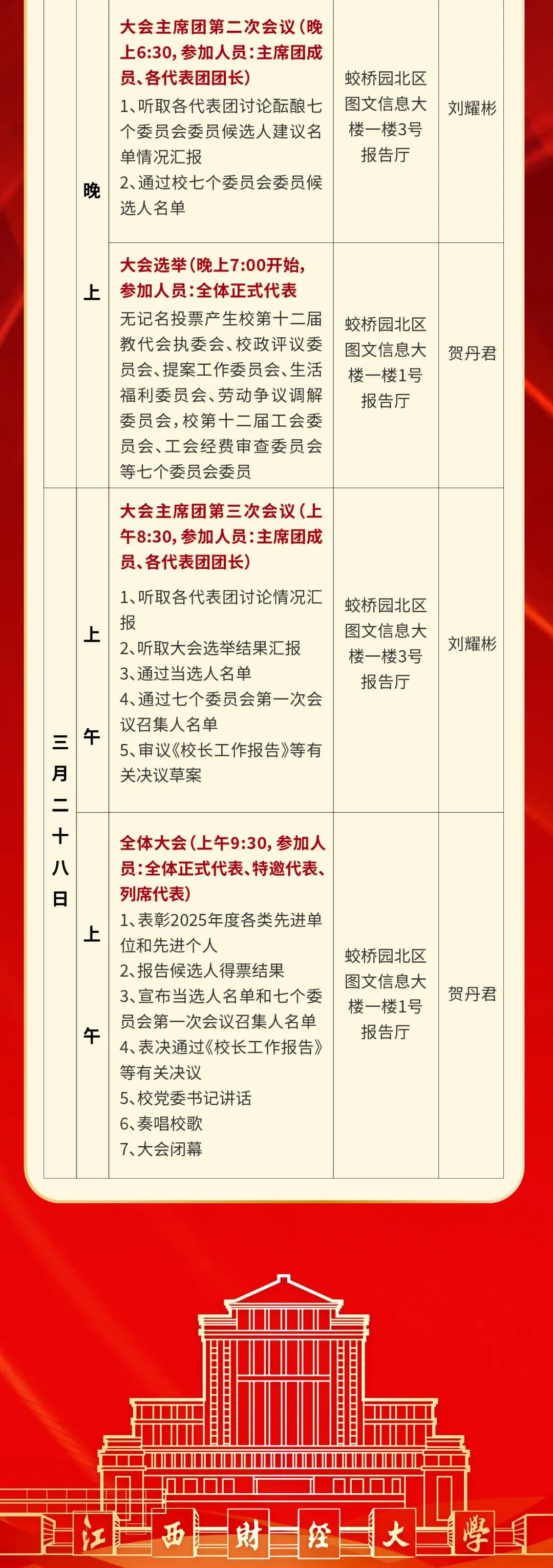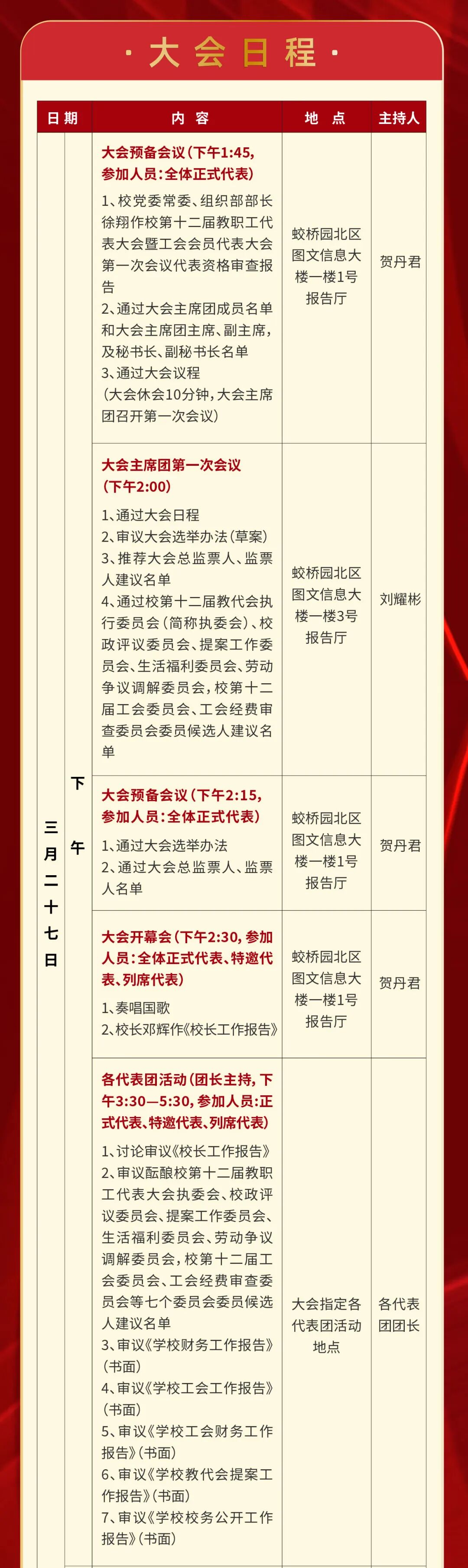 江西财经大学第十二届教职工代表大会暨工会会员代表大会第一次会议日程