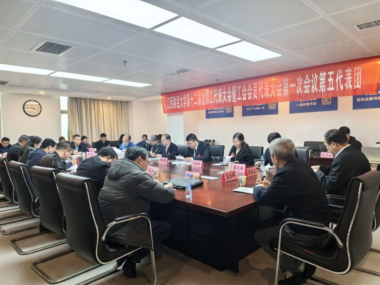 3月27日下午,江西财经大学第十二届教职工代表大会暨工会会员代表大会第一次会议第五代表团会议在蛟桥园图文信息楼615会议室召开。党委常委、副校长李春根参加第五代表团讨论,会议由第五代表团团长张利国主持。