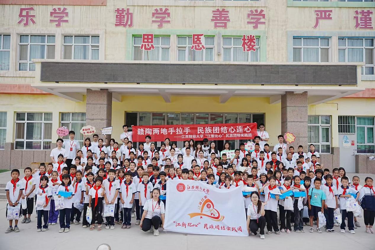 自2021年起,“江新比心”民族团结实践团已连续五年赴新疆克孜勒苏柯尔克孜自治州阿克陶县,累计服务170天,围绕红领巾课堂、普通话推广、非遗文化调研、公益摄影、文创设计等主题开展活动近280场,服务2万余人。实践队由我校汉族、柯尔克孜族、维吾尔族等多民族师生组成。从全国316支团队中脱颖而出,展现了我校服务国家战略的使命担当与青年学子促进民族团结的青春风采。