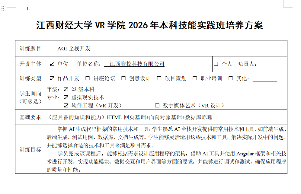 技能强化班:在大三下学期开设,面向数字人、AIGC、智能体开发等产业新技术,开展高强度的集中实训,由企业高管和一线工程师授课,全面提升就业能力。