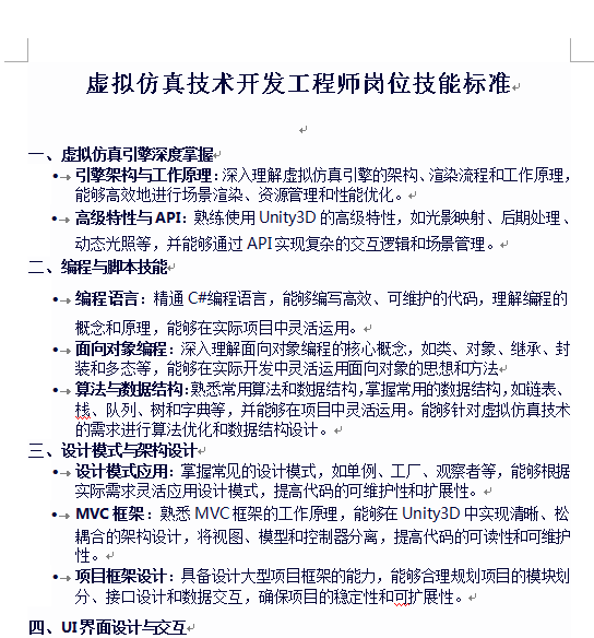 定人才培养标准:广泛收集合作企业的意见与建议,结合《虚拟现实工程技术人员国家职业技术技能标准》和主流招聘网站的岗位名称和招聘要求,确定各培养方向的岗位设置及要求。划分各个岗位的能力级别,梳理知识点和技能点。
