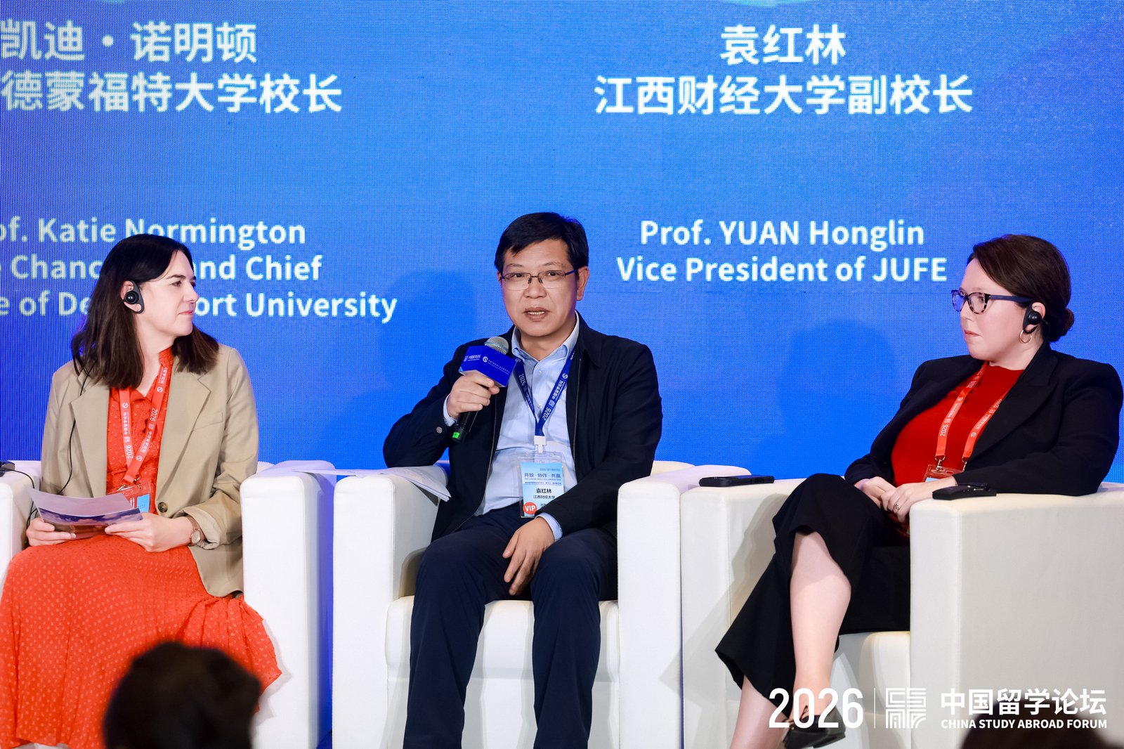 4月10日,由教育部留学服务中心主办的2026中国留学论坛暨中国国际教育巡回展在北京国家会议中心开幕。副校长袁红林应邀出席并参加“数智时代出国留学生态服务系统协同构建与创新”圆桌论坛,出国留学预备学院院长肖珑及相关工作人员陪同参会。
