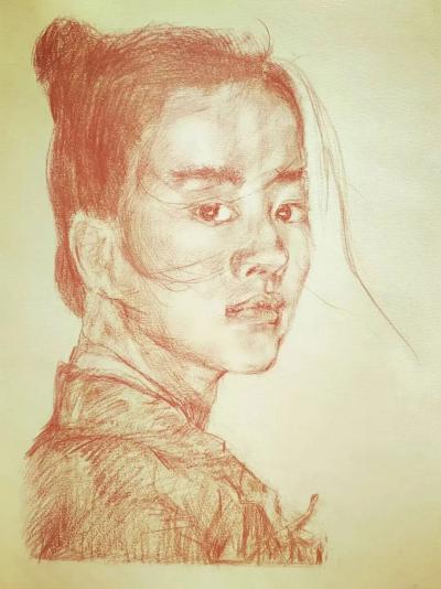 宾芯对绘画怀有浓厚的热情,这一爱好贯穿了其成长历程。高中时期,她对绘画展现出尤为显著的兴趣,在一次以国庆为主题的绘画活动中,她精心创作了一幅以“保卫祖国”为核心的素描作品,画中持枪士兵的形象生动逼真,凭借卓越的绘画技艺,她在年级绘画比赛中脱颖而出,荣获奖项,并因此在校园内声名鹊起。