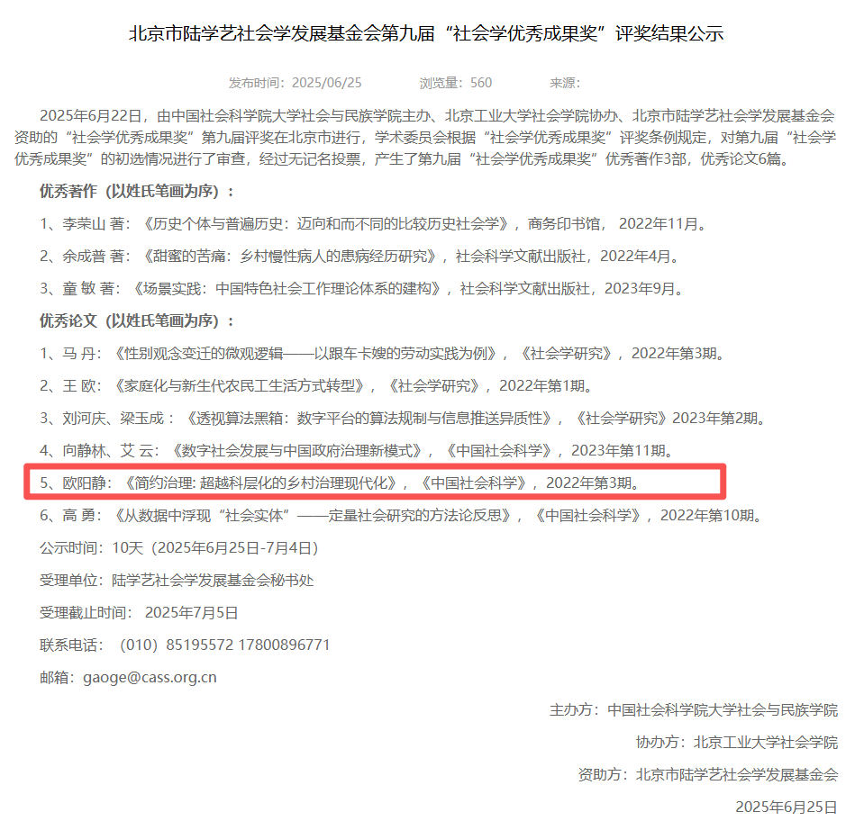 首先,基于中国基层实践经验。《基层治理讲义》的编撰拥有扎实前期基础,研究团队深入十余省份的县域社会,通过对县级部门、乡镇党委、社区干部、农村居民的实地访谈,梳理基层治理中存在的典型问题、现实困境与治理经验。研究团队发表基层治理方向CSSCI论文50余篇。其中欧阳静教授《简约治理:超越科层化的乡村治理现代化》一文发表在权威期刊《中国社会科学》,并获评江西省第二十次社会科学优秀成果特等奖与第五届江西省理论成果奖。