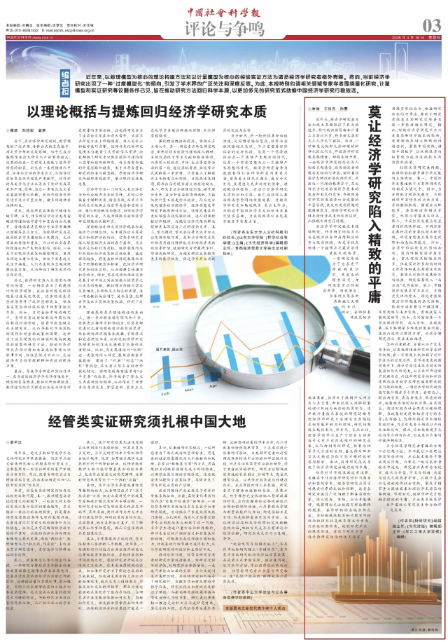近年来,当代财经杂志社在推动经济学研究健康发展方面持续发力。2026年初,杂志社联合国内其他五家学术期刊,共同发起了关于同行评议的大讨论,旨在促进学术交流,启发青年编辑、审稿人与学者深入思考,进一步改进文风、提升经济学研究的整体质量。此次大讨论得到了学界的广泛关注与积极反响。4月16日《中国社会科学报》争鸣与探索栏目刊登的三篇系列文章,包括《以理论概括与提炼回归经济学研究本质》《莫让经济学研究陷入精致的平庸》《经管类实证研究须扎根中国大地》,正是此次大讨论活动的延续。