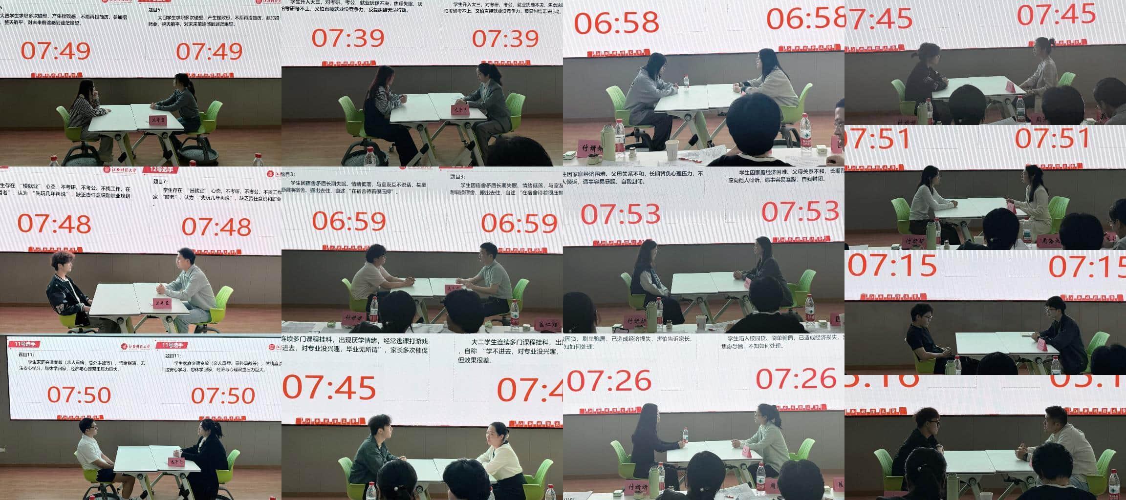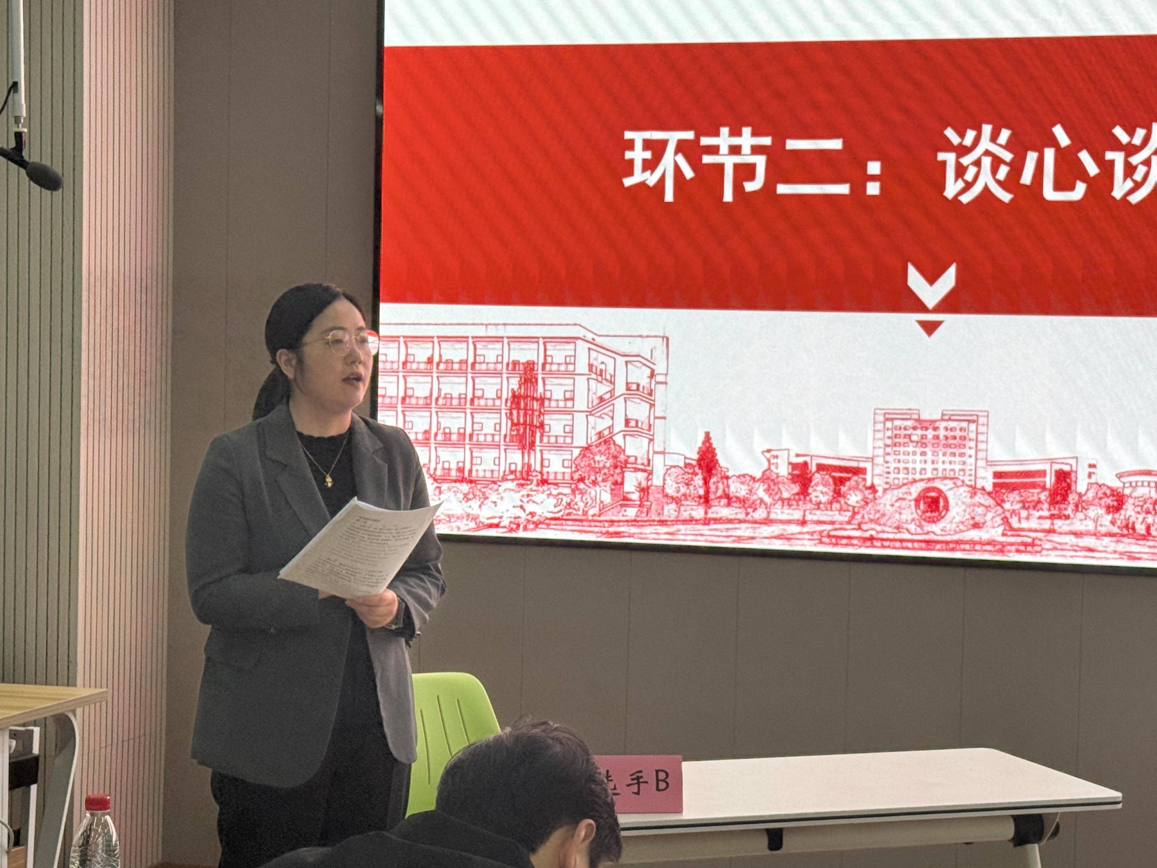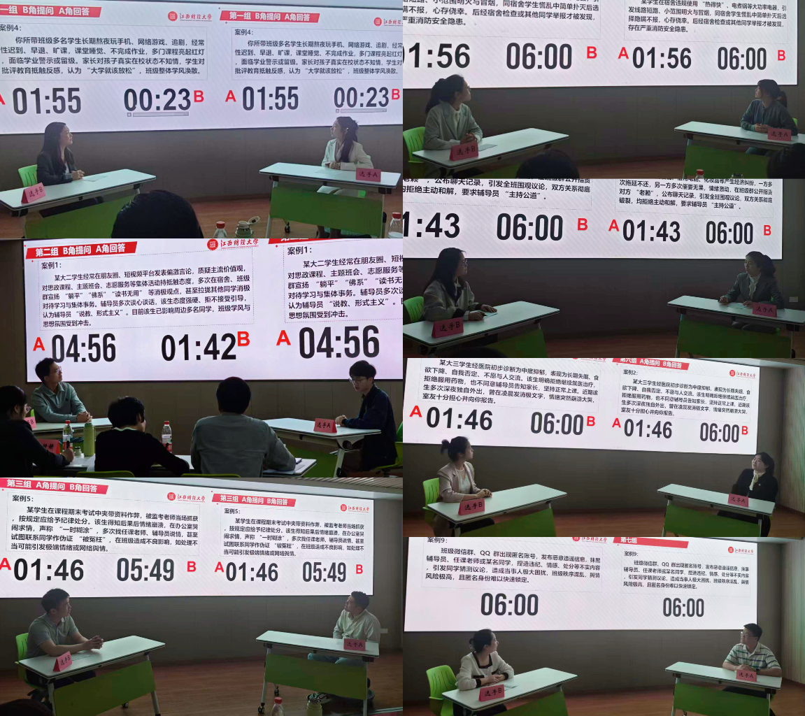 本次决赛设置案例研讨、谈心谈话两大核心环节。案例研讨环节,重点考查辅导员运用思政理论剖析问题、研判风险、统筹施策、应急处突与综合化解能力;谈心谈话环节立足真实育人场景,检验辅导员把握学生成长规律、思想引领、情感疏导、答疑解惑及精准育人帮扶的综合素养。各位参赛辅导员依次登台竞技,面对典型育人案例,大家结合工作实践深度剖析成因、理清矛盾症结,提出科学可行、落地性强的处置思路与育人方案;在谈心环节,参赛辅导员紧扣学生心理特点与现实困惑,开展沉浸式一对一沟通引导,温情疏导、精准施策,用专业素养与育人情怀化解学生思想难题,充分彰显我校辅导员深厚的育人情怀与过硬的专业水平。