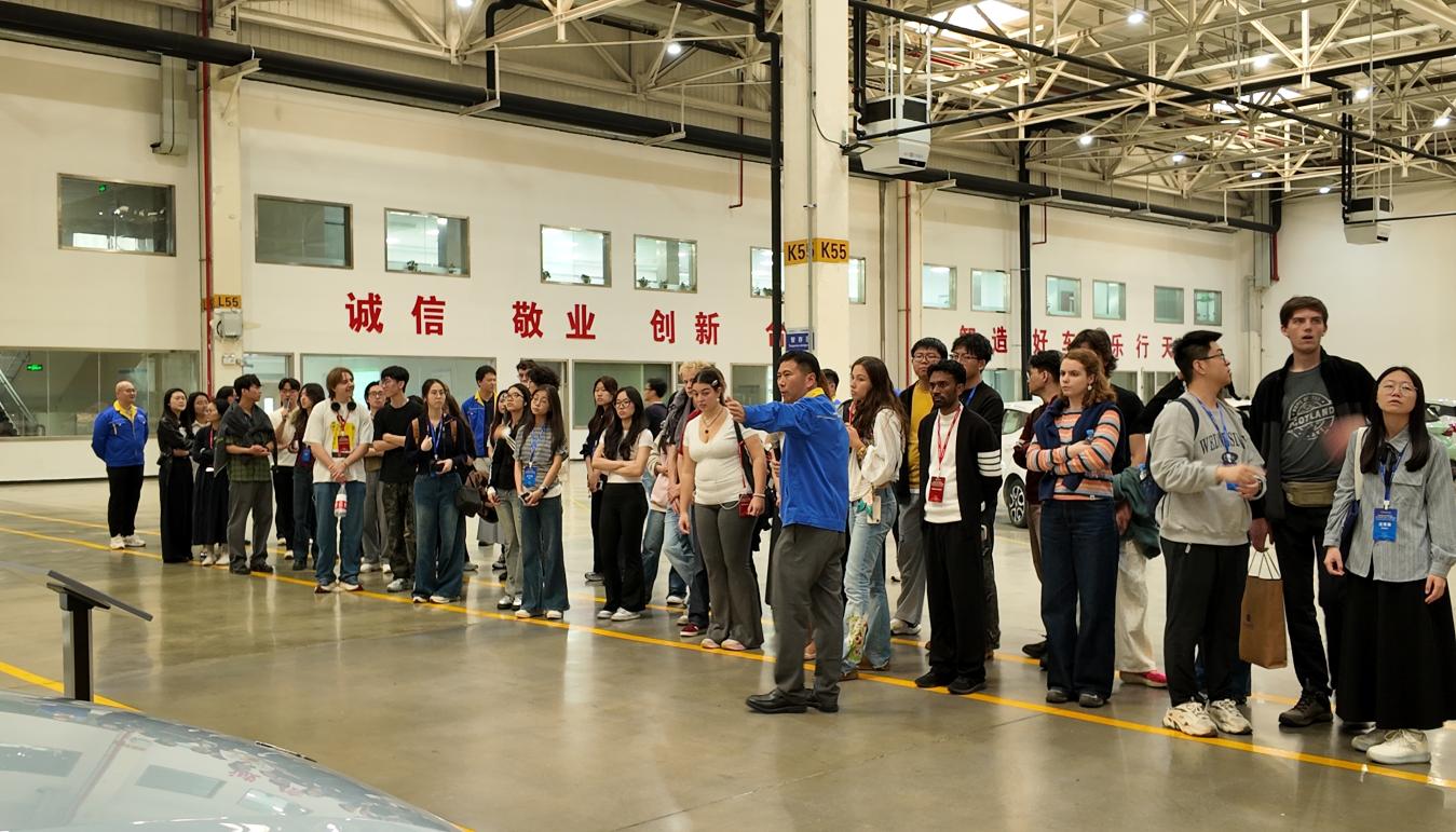 在江铃新能源股份有限公司,高度智能化的生产线让知行团团员们见证了中国“智造”的强劲实力。从焊装到总装,自动化设备精准高效运转,展现出绿色制造与智能制造的深度融合。“这样的自动化水平在全球范围内也是一流的。”来自牛津大学的交换生Dillon赞叹道。