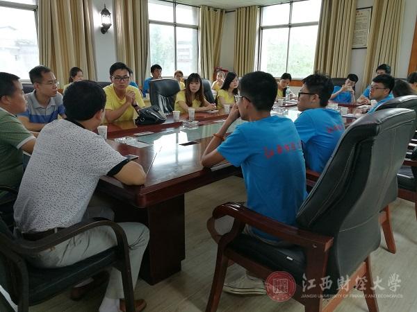 施春明镇长首先对志愿服务团的到来表示了热烈欢迎,并表示对成员们的关怀与期望。他指出本次调研活动不仅对服务团成员们来说是一次很好的锻炼机会,同时对蛟潭镇来说也是一个良好的发展契机,相关政府机构对本次活动给予了高度重视并表示大力支持。之后,施镇长简要介绍了蛟潭镇的基本情况,表示蛟潭镇目前的发展还处于一个欠发达水平。因此蛟潭镇政府热切期望服务团成员们通过本次调研,为当地旅游发展提出切实可行的建议。接着,团委书记陈潇原与服务团成员对接和部署了相关政府基层助理工作,蛟潭镇政府为服务团成员提供了在精准扶贫中心、计生办、党政部等几个部门的十余个助理岗位。