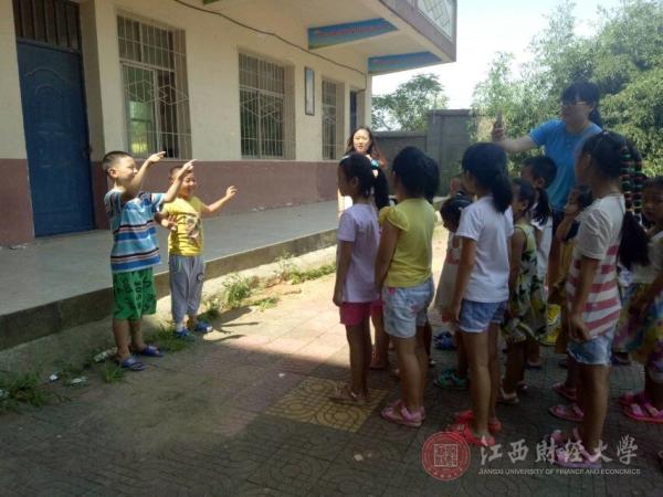 “五星红旗迎风飘扬,胜利歌声多么响亮,歌唱我们亲爱的祖国,从今走向繁荣富强……”,10名服务团成员在支教的“爱心课堂”里带领相约前来学习的近30名小学生共同唱起了红歌—《歌唱祖国》。在他们的积极带动和鼓励下,孩子们纷纷融入到了齐声高歌的愉快氛围中,响亮的歌声久久回荡在教室内外,唱出了大家对伟大祖国的美好祝福。学唱期间,服务团成员们主动地与同学们进行沟通交流,耐心的教唱每一句歌词,不少害羞的学生也张开了口,跟唱起《打靶归来》、《我们是共产主义接班人》等一首首耳熟能详的红色歌曲,热烈的氛围感染了教室里的每一孩子。“平时我都不敢开口唱歌的,但在其他同学的影响下,我很快就融入了进去,很高兴!”小学生陈钰激动的说。