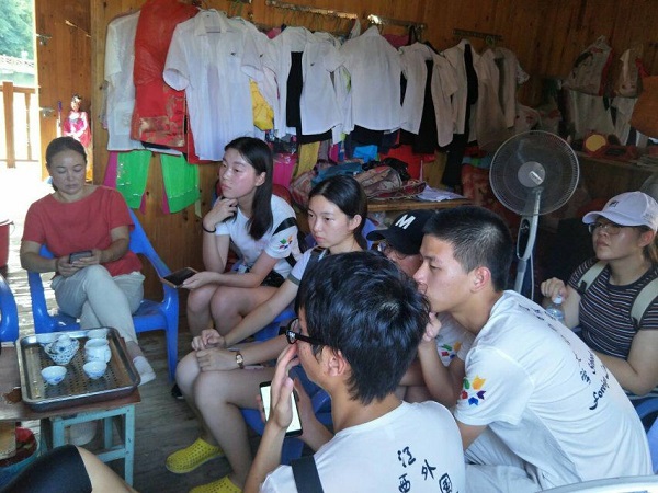 二胡艺人们热情地与队员们聊起他们的故事,起初演奏条件非常艰苦,设施简陋,但大家凭着对音乐、艺术的热情与喜爱一直坚持了下来。随着土楼景区的发展,如今土楼中心的设施得到了一定的完善,演奏者的待遇也相对提高。演奏者农民肖阿姨说,“我们现在可好了,工资400元足够了,我们白天来这里唱唱歌,回家后干干农活,每天都开开心心的,感到特别幸福。”