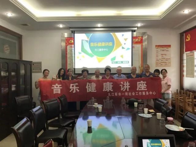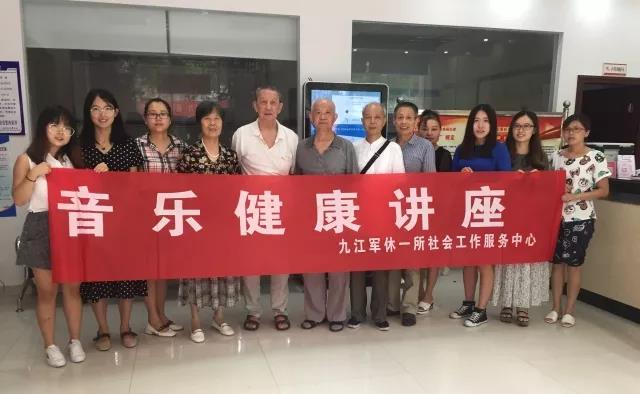 7月5日、6日、11日,江西财经大学人文学院与九江军休一所合作的社工服务机构,分别在庐峰花园社区、九江军休一所和南湖社区开展了音乐健康讲座活动。