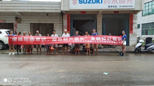 为提高村民金融安全基础知识、增强防骗意识,7月12日上午,我校暑期三下乡丰城同田团开展“增强防骗意识,避免财产损失”的金融知识宣讲实践活动。此次活动为4至5人为一小组,向村民普及金融知识。