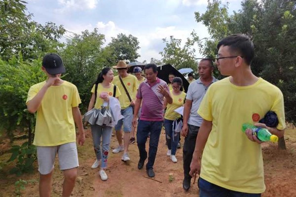 在养殖基地负责人漆武的带领下,助理团成员进入山林中的土鸡散养基地内部,近距离接触养殖运作模式的全过程。经由负责人的介绍,我们得知当地土鸡养殖皆为林下散养,工作人员只负责供给少量的玉米,谷子作为辅料,因此土鸡生长周期长达一年。并且在养殖厂的多年发展与摸索后,这里逐渐形成了,山上种植茶花树,板栗树,红豆杉等经济作物,林中散养土鸡,土鸡以树木果实为食,并给予林木天然养分,绿色循环,增收创优。因其散养土鸡天然有机,高品质获得社会的一致认可。随着话题的深入,我们了解到散养基地积极与政府合作,实行“以公司带农户”的扶贫模式,带领当地的贫困农户脱贫致富。在政府的扶持与引导下,农户向养殖基地投资入股,基地年末收益的10%将以分红的形式发放给参股农户。通过各方的协调与努力帮助当地贫困农户扩宽增收渠道,进一步实现黄龙村的脱贫致富。