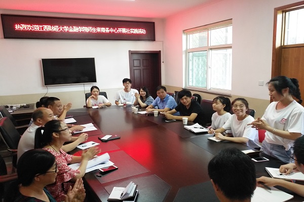 7月19日上午,“筑梦新时代,奋斗新征程”江西财经大学金融学院暑期“三下乡”赴山西长治社会实践服务队来到山西黎城县商务中心,就黎城县农村电商发展问题开展了一次别开生面的座谈会。黎城县商务中心主任任亚军、我金融学院党委副书记郭海峰等与全体实践服务队成员参加会议。