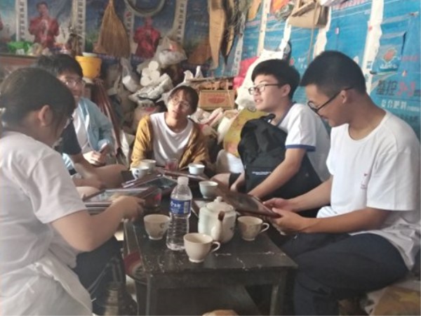 经过短暂的车程,实践队成功抵达目的地。索马凹四周层峦叠嶂,实践队员们被山顶村中农家小院、毛草小屋、手推石磨、黄色的大耕牛,结伴归来的羊群这些古朴的农村美色所吸引。在村里张爷爷的热情招待下,实践队员们围着炕头听爷爷奶奶讲起了索马凹的故事。十多年来,村里的居民搬走了一户又一户,最终只剩下仅有的三户人家,在村民为下山犯起犹豫的时候,杨安乡在瓮城山上做起了旅游文章。这地方的奇峰秀水,烂漫山花,阳光、田野、蓝天正是旅游致富的好资源。至于老爷爷,最终选择留下的他,给自己做了“不动房,勤垦地,多养黄牛快快搞”的计划,近年来也慢慢富裕起来了。“家居绿水青山畔,人在富裕祥和中”,张爷爷说有一年专门请人给写了这么一副春联,这幅春联的内容讲出了他的心声。“咱们为绿水青山就是金山银山干杯!”谈话的末尾张爷爷发出了爽朗的笑语。