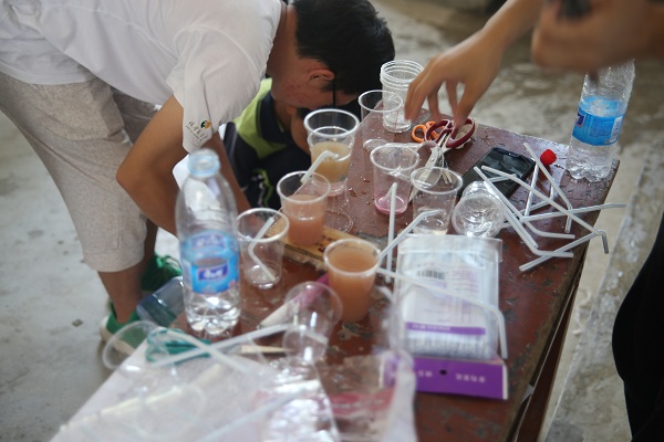 下午,志愿者熊建给小朋友们带来了两个有趣的科学实验——钓冰块与神奇吸水桥。神奇的现象让小朋友们发出阵阵惊讶声,个个都跃跃欲试,随后各个小组合作进行有趣的科学实验操作,探索了许多神奇的科学原理,都玩得十分开心。