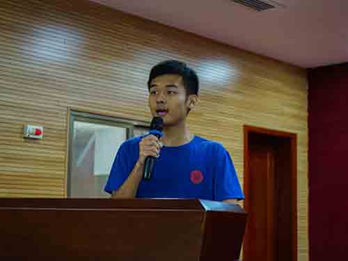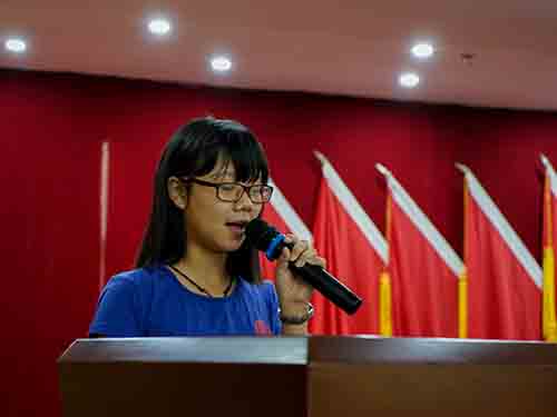 第三位宣讲同学欧阳宇则从另一角度出发谈论了她的中国梦---愿祖国强大、富强。在对往昔的回顾中,欧阳宇表示自己深感故乡、祖国的变化之大,并深受这内在蓬勃生命力的吸引。以前的故乡,公厕总是位置少的可怜、垃圾收集处总是苍蝇的集聚、而道路则总是泥坑遍布。这样落后的乡村环境对应的是贫穷,是落后。终于,随着新农村改革的全国扩延,新房建立起来了,水泥马路修起来了,农民伯伯脸上有了那满是希望的微笑。这样焕然一新的乡村,对应的是进步,是富强。在宣讲末尾,欧阳宇同学表示将力求成为一代有为青年,为祖国的更加强大、富强贡献一份自己的力量。