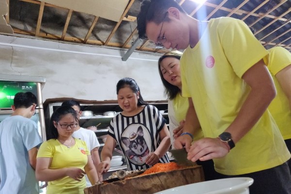 为增强团队凝聚力,24日晚,靖安香田村长助理团成员们买来面粉蔬菜,以别样方式参与饺子的制作过程,感受包饺子带来的乐趣。蘸水、点皮,舀一勺肉馅在饺子皮上,一捏、一扭……一个个可爱圆润的饺子在成员们的手上诞生。没有掌握包饺子技能的同学也在抓紧时间“拜师求艺”,现场热闹非凡。过程中,大家还互相分享自己家乡的故事,思乡之情中酝酿出欢乐的家庭气氛。成员们表示:“很多家庭会包饺子来庆祝阖家团圆的欢乐,我觉得包饺子时,我们的团队就像一个大家庭。”