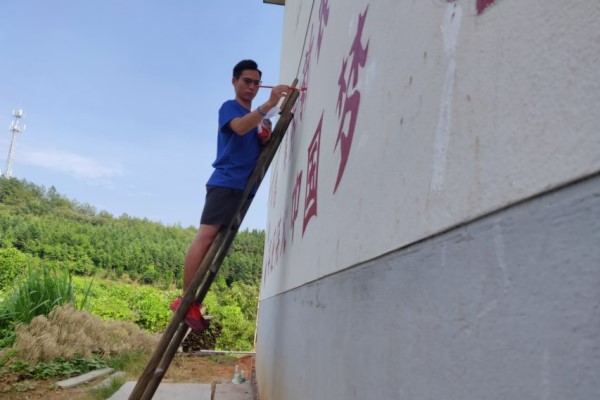 文化墙是展示地方建设方向、动员全民参与建设、传递正确价值观的重要平台。以“建设美丽新农村 实现伟大中国梦”为主题,靖安香田村长助理团成员们以红色为基调,将当地民俗文化特色融入文化墙的设计之中。骄阳似火,成员们在文化墙前忙碌的身影构成一道亮丽的风景线。“在一个地方实践而留下自己的足迹,这种感觉是很不一样的。”参与文化墙绘制的成员们表示,为香田的发展做出看得见、摸得着的真实的贡献是一件非常有意义的事情,也是自己参加“三下乡”实践活动里不可磨灭的一段记忆。