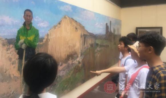 走到展馆尽头,一幅高两米、长九米的巨型油画《家园守望者》吸引了所有人的目光,负责人介绍道,这是山西最大的油画,是中央美院油画系张路江老师在右玉的呕心之作,堪称镇馆之宝。看着这幅画,队员不禁陷入沉思。七十年前的右玉,荒漠贫瘠、黄沙漫卷;七十年后的右玉,荆草连山、坡田漫野。油画的守,是右玉人民对家乡的守候;望,是对绿色的期望,对未来的希望。