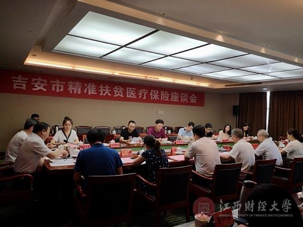 8日上午,金融学院暑期“三下乡”保险精准扶贫调研服务队来到吉安,与当地中国人寿、人保财险、扶贫办、卫计委、财政局、医保办等领导,就吉安市精准扶贫医疗保险实施情况开展了一次深入的座谈会。